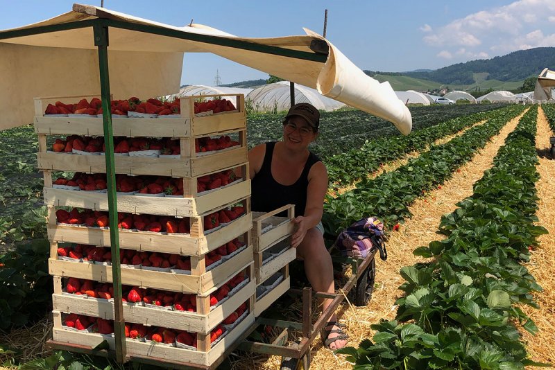 Sonderkulturen, wie Weinbau, Apfel, Stein- und Beerenobst angebaut. Unsere Saison startet