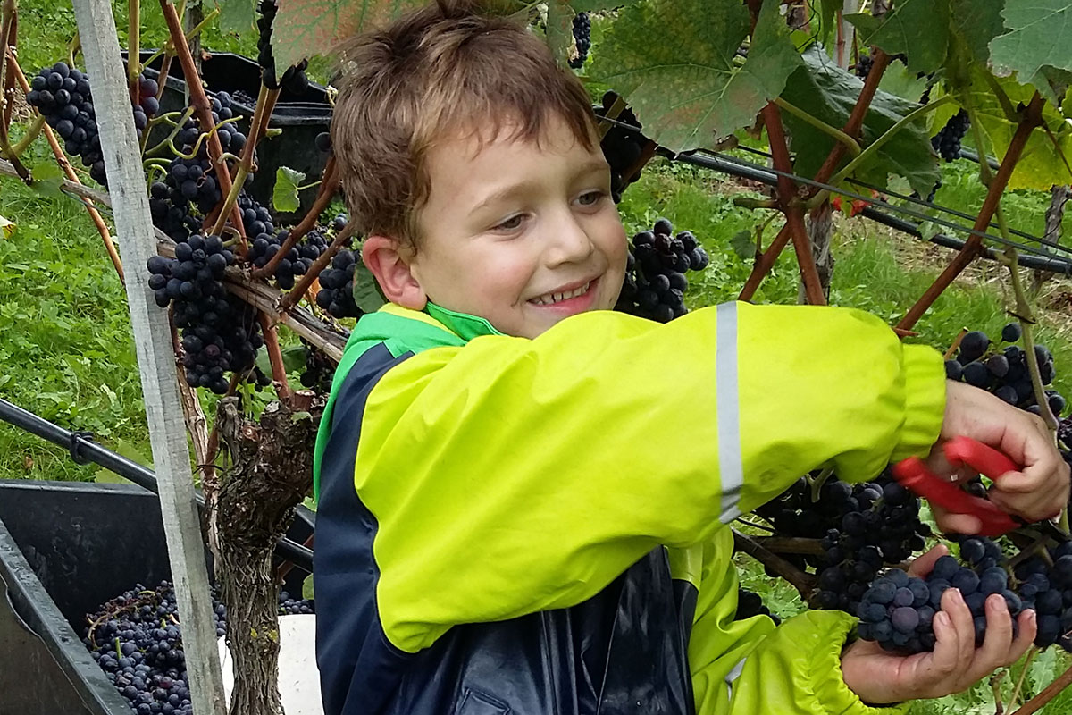 Parallel zur Apfelernte beginnt im September / Oktober die Traubenlese, welche ausschließlich